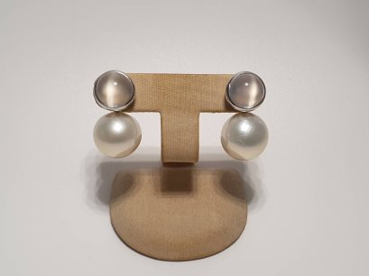 Moonstone Earrings with Detachable Fresh water Cultured Pearl Ear-hangers